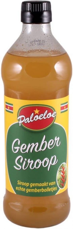 Paloeloe Gember Siroop is gemaakt van echte gemberbolletjes en daarom heerlijk kruidig van smaak. Meng de siroop (1:3) met ijskoud water of mineraalwater voor een smaakvolle dorstlesser. Tevens geeft deze siroop een zoete en kruidige smaak aan uw saus, saladedressing of gerecht.
