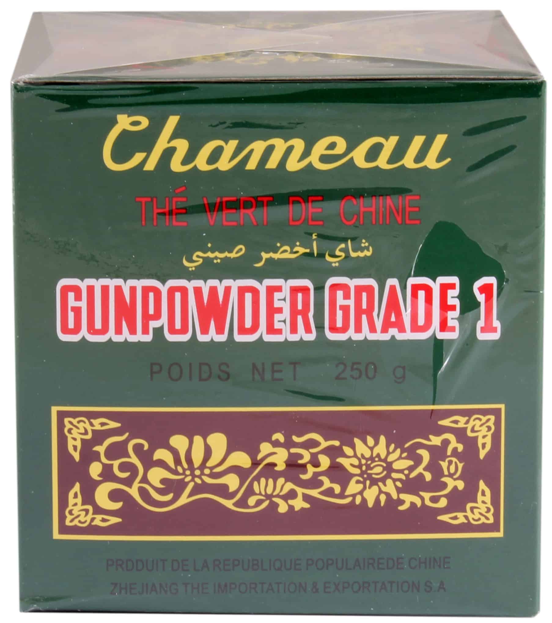 Chameau/Camel Gunpowder Tea, ook wel bekend als Zhu Cha (珠茶), is een traditionele Chinese groene thee die zijn naam dankt aan de unieke vorm van de theeblaadjes. Deze worden strak opgerold tot kleine bolletjes die doen denken aan buskruitkorrels, vandaar de naam.